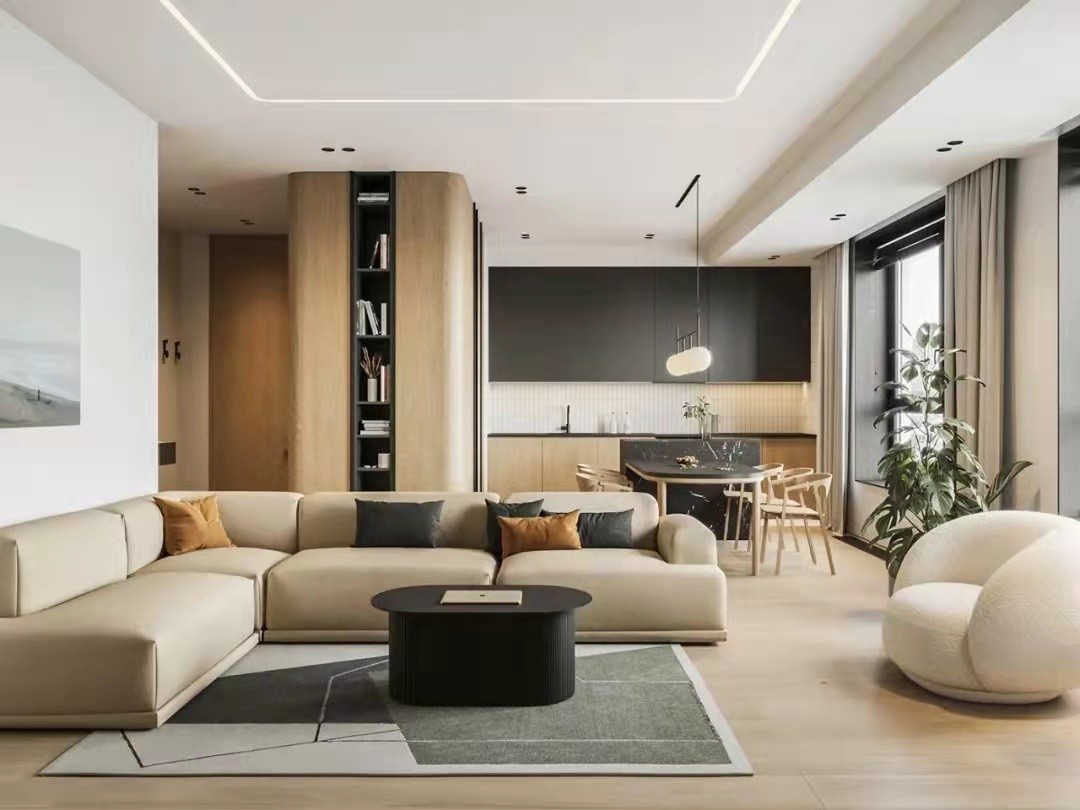 客厅当中选择浅色进行配色,简单的配色反而让空间变得更加***精致的家具,再加上空间当中简单的线条,让整个空间变得更加舒适,也突出了设计者的木质背景墙让整个空间有了自然的温馨。