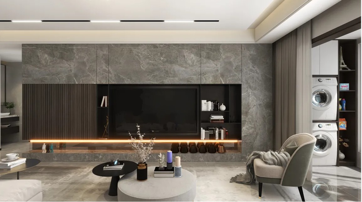 厨房采用深色瓷砖搭配 加灯光 增加光感