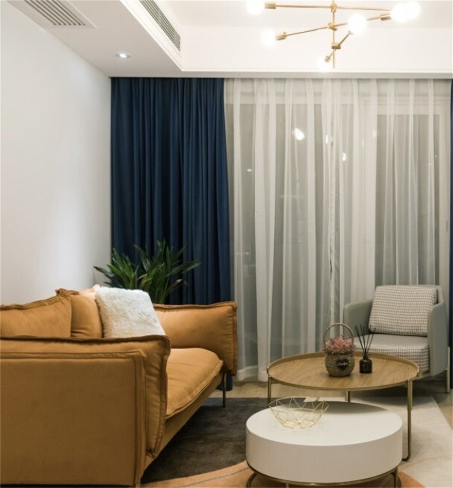 客厅的电动竖百叶可以完美的描绘阳光的形态,正与负的旋转完成纱帘与布帘的私密性的转换,客厅从此变得轻盈,阳光也变得更加向往自由。