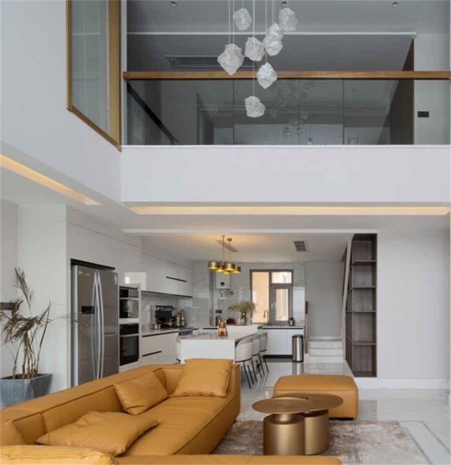 餐桌部分将岩板岛台、亚克力木桌进行融合,不同的标准与体系相互作用,传递出自然而新鲜的美感。