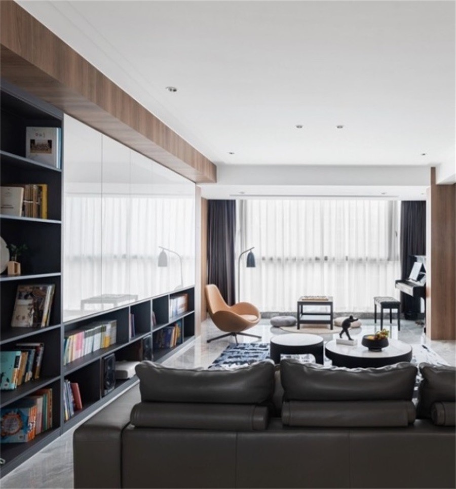 主卧的布局做了调转安排,在视觉上很好的规避了来自于外部动区的视线,保证在外部看到的都是经过雕琢的和营造的空间细节,让美始终贯穿视觉,形式上内外统一。