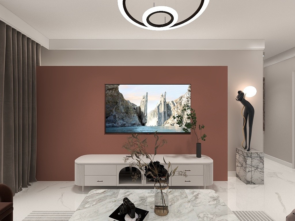 客厅空间比较大,结合玄关颜色,增加氛围感。