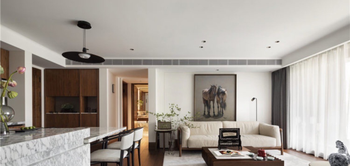 重新定义区域形态,入户厨房开放式设计打破原始沉寂感,岛台延伸桌椅,不拘泥于僵硬的空间划分,弧度造型更生出无限瑰丽的遐想。