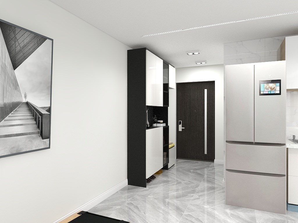 门厅设计的鞋柜属于超波型的,换衣服也比较方便