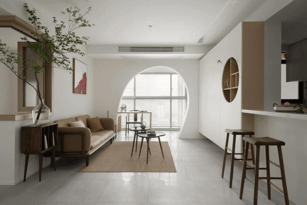 客厅硬装的木作采用原木色+白色,软装则用黑胡桃深色提升质感。深+浅,轻+重的形式,空间的层次像写意画的笔触在宣纸上晕染开。
