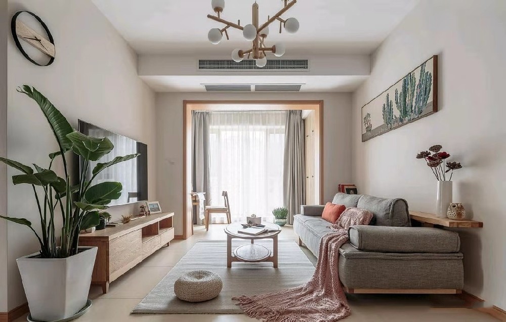 打掉原户型过道墙体,采光倍增,空间通透,巧妙运用空间流动与分隔,流动则为一室,分隔则分几个功能空间,最便于两人居住。