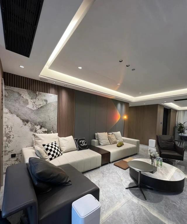 沙发背景墙凸显档次,木饰面格栅蔓延着温暖的气息,让整个空间氛围缓和很多