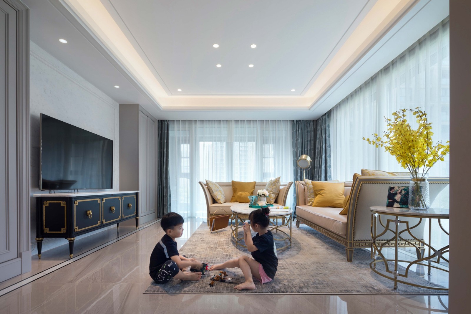 暖灰色中、加入一抹粉色系的浪漫,原本的清冷气息瞬间变得舒缓起来,成为治愈疲劳的一剂良方;pu线条在墙面勾勒出的利落线条框、比大白墙更加生动有质感; 家具的选择则具有相对的包容性、追求休闲现代的感觉,这就是自在、浪漫的现代美式风格。