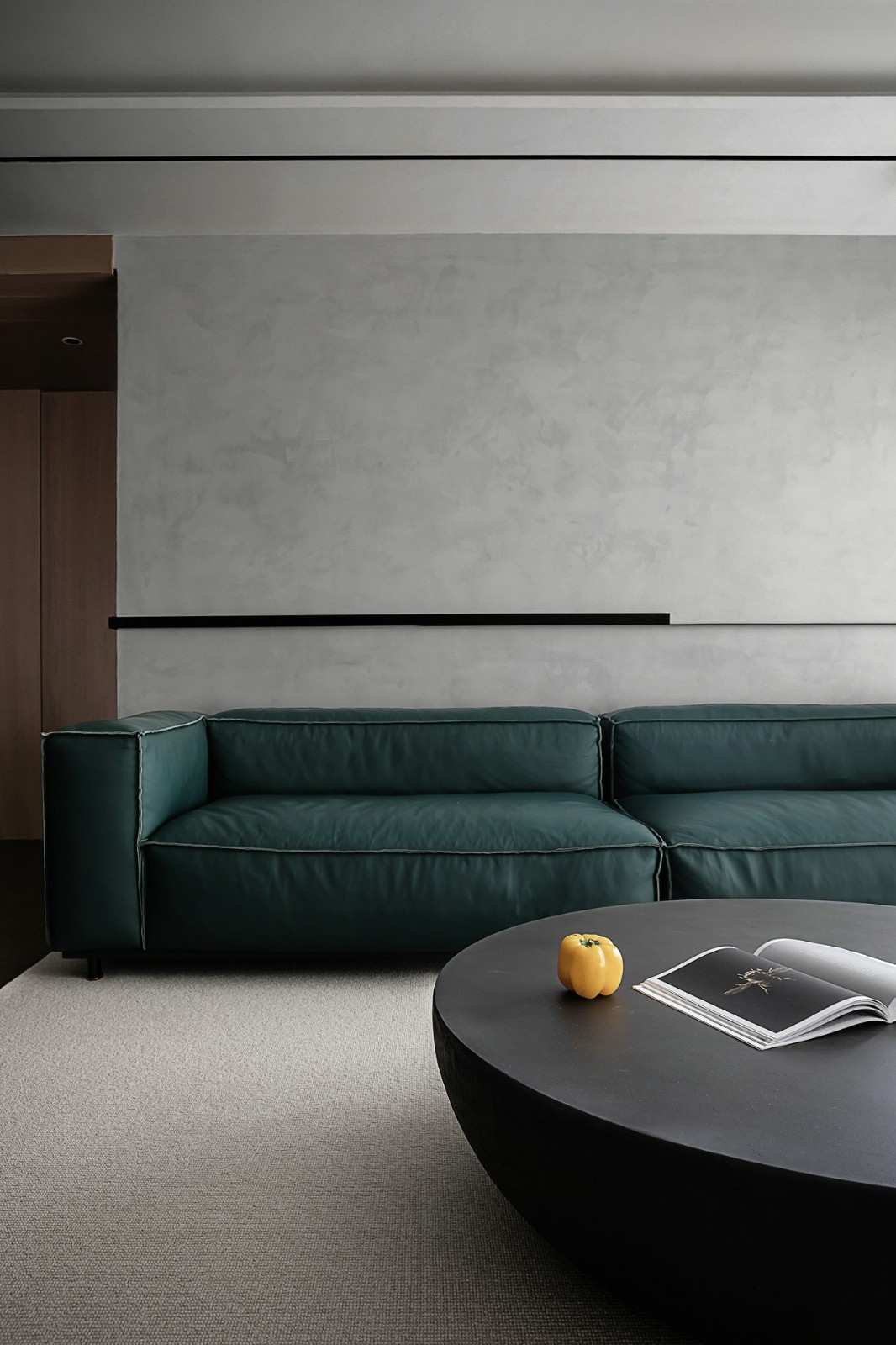 轻盈的艺术涂料,和沉稳的木饰面,加强了空间的纵深感。