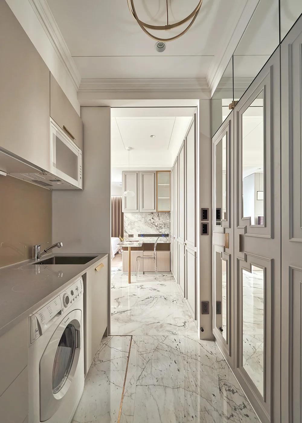 由于业主曾提及对四季酒店的喜爱 因此我们搜集了世界各地的四季酒店 慢慢剖析出屋主心中对于法式风格的定义 而因应小空间,本案不求太多线板装饰 而是将法式风格化繁为简 运用壁纸和磁砖拿捏比例与尺度 描绘精而巧的现代古典美学