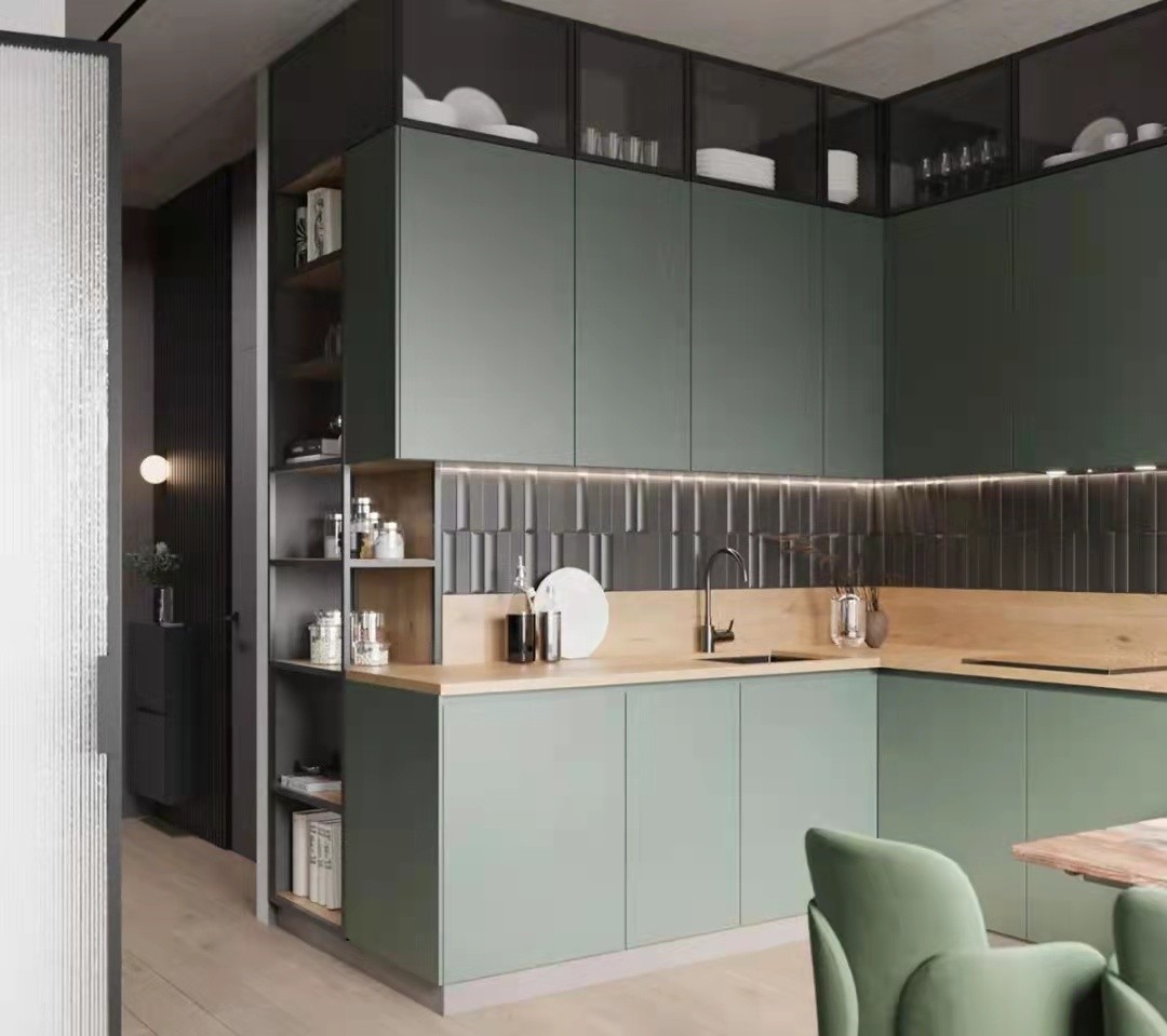 绿色的柜门与黑色的墙面,小清新