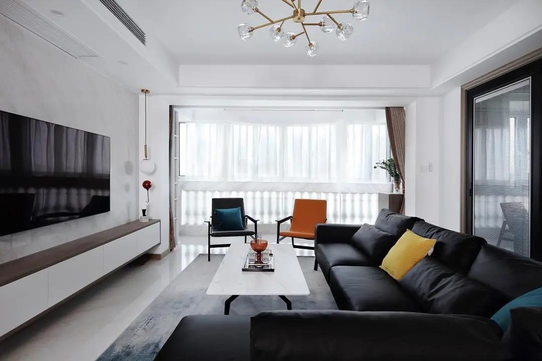 把阳台打通,和客厅连为一体,空间就更显得宽敞、明亮。书房和客厅之间的墙壁拆除,用玻璃移门代替,使几个空间可以相互借光,而且两个空间的人还可以形成互动,这种感觉非常好。