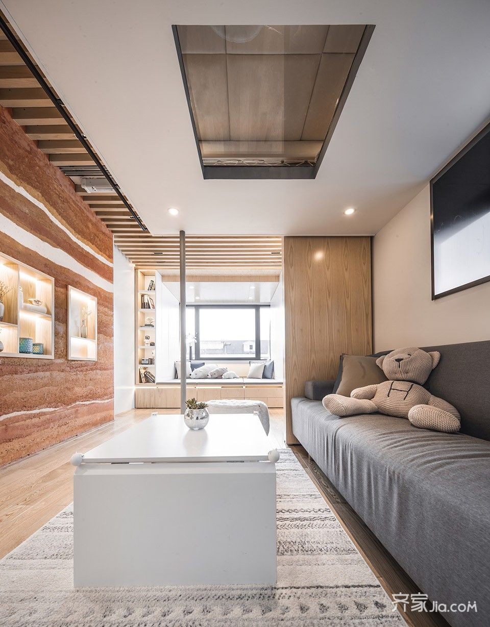 明亮的卧室,伴随着飘窗茶桌