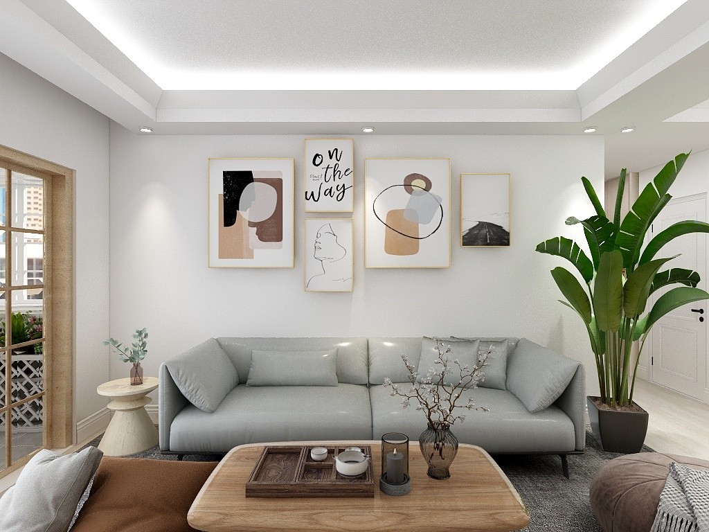 沙发背景墙作照片墙,电视背景墙也挂上一些简单的装饰,以简胜繁,简单大方。
