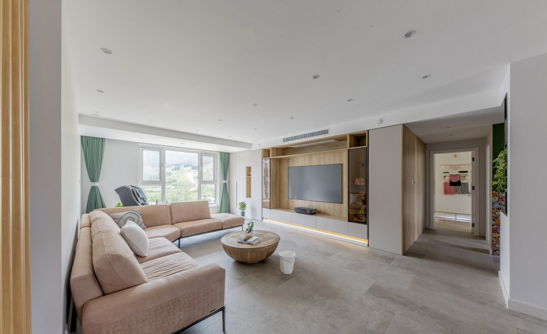 像是框出了三餐的风景,框出了更多生活的烟火气息。随处可见的简洁线条,为空间增加了利落干练的气质。