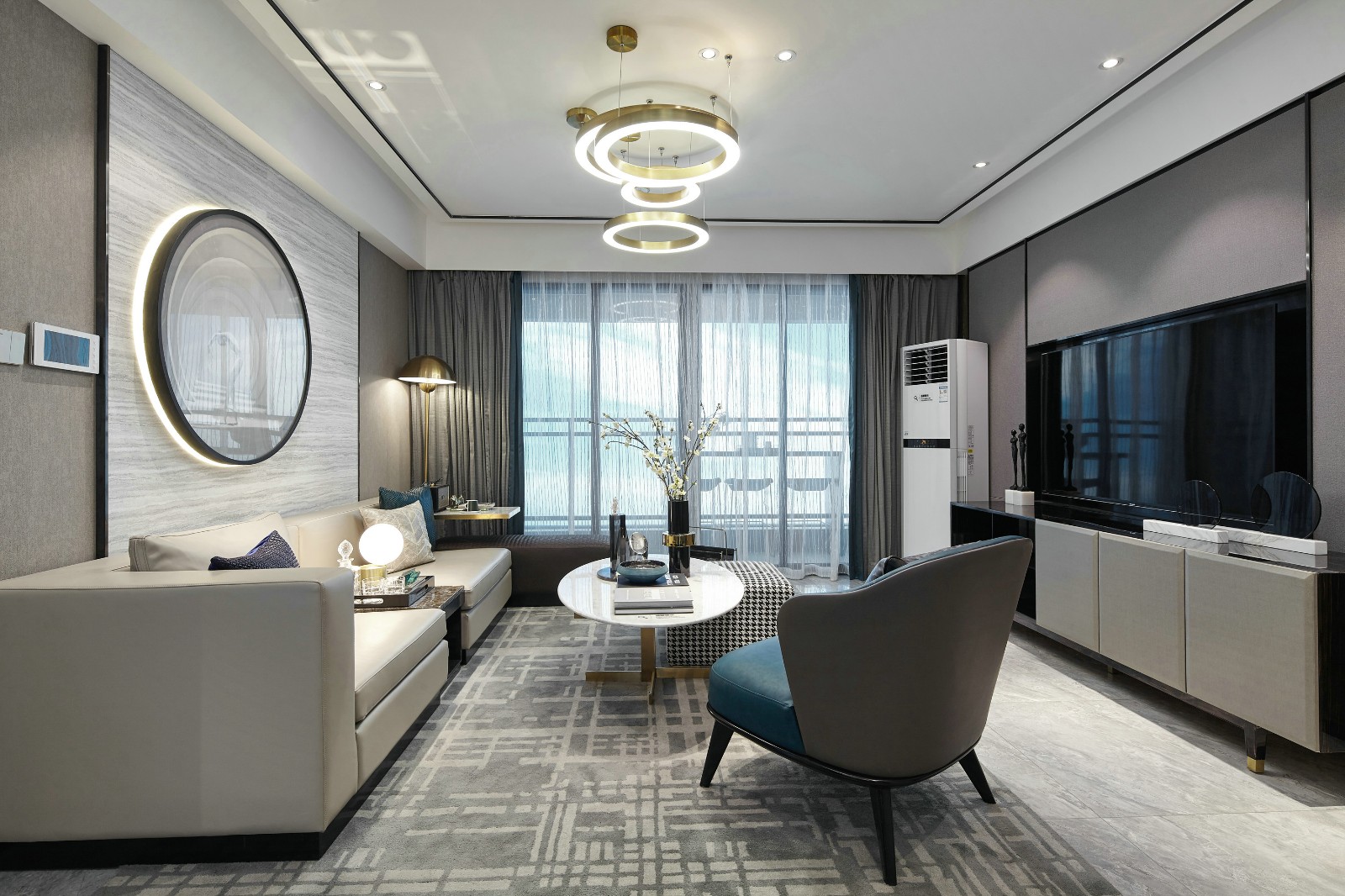 客厅做了吊顶和黑色金属元素