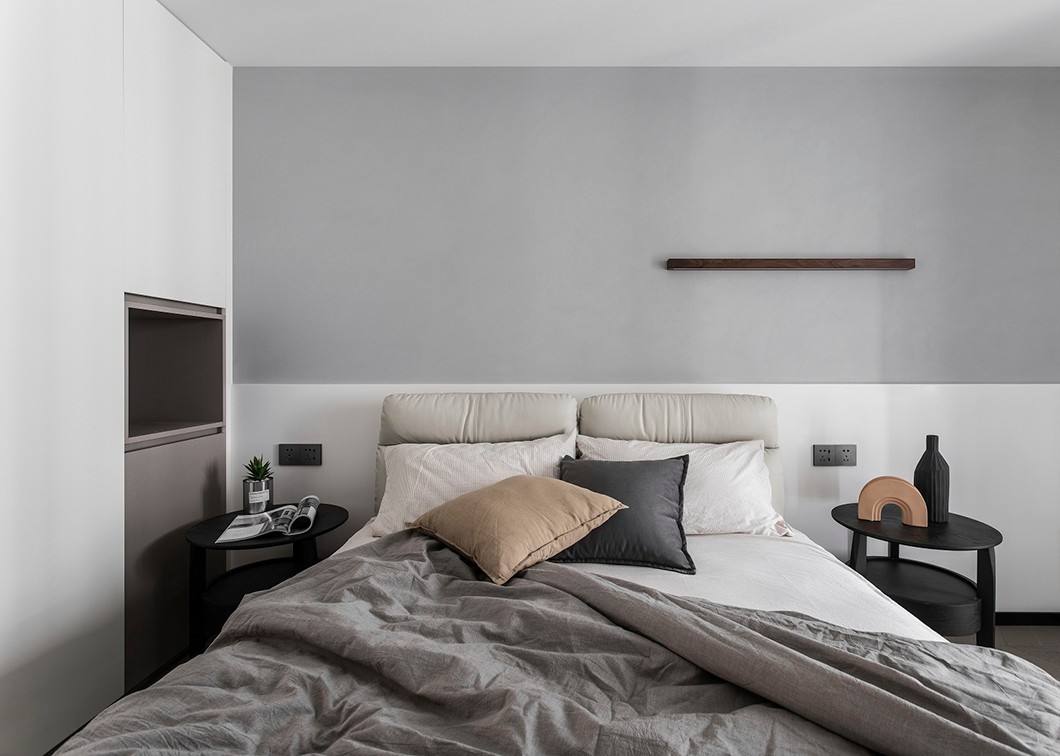 打通厨房和餐厅的空间,让使用空间更开阔,全屋以手工艺术漆为主,结合不同材质的木饰面,营造一个沉稳静谧的现代住宅。