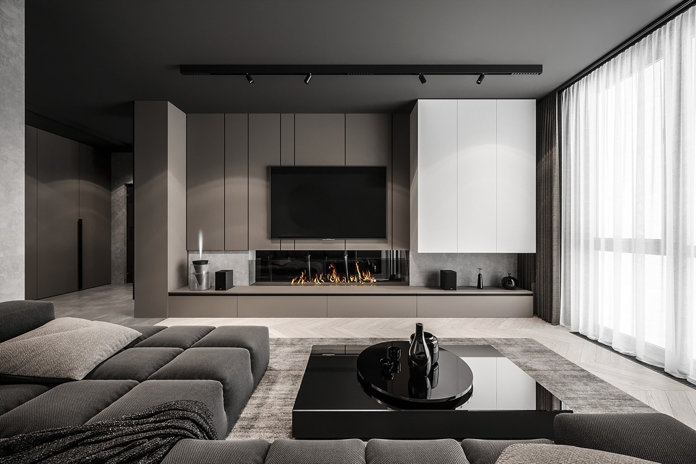 整体风格以现代为基调,搭配白色色的 踢脚线的元素,整体感觉 层次感十足