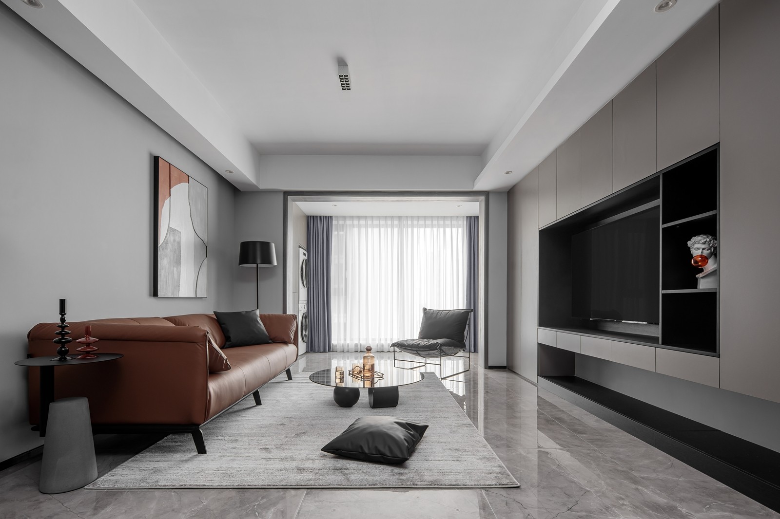 皮革棕传递雅致、沉静的格调,流畅的线条感从地面延伸到天花板,通过精心合理布置物品及其所处方位,呈现出一种带着从属意味的和谐氛围。