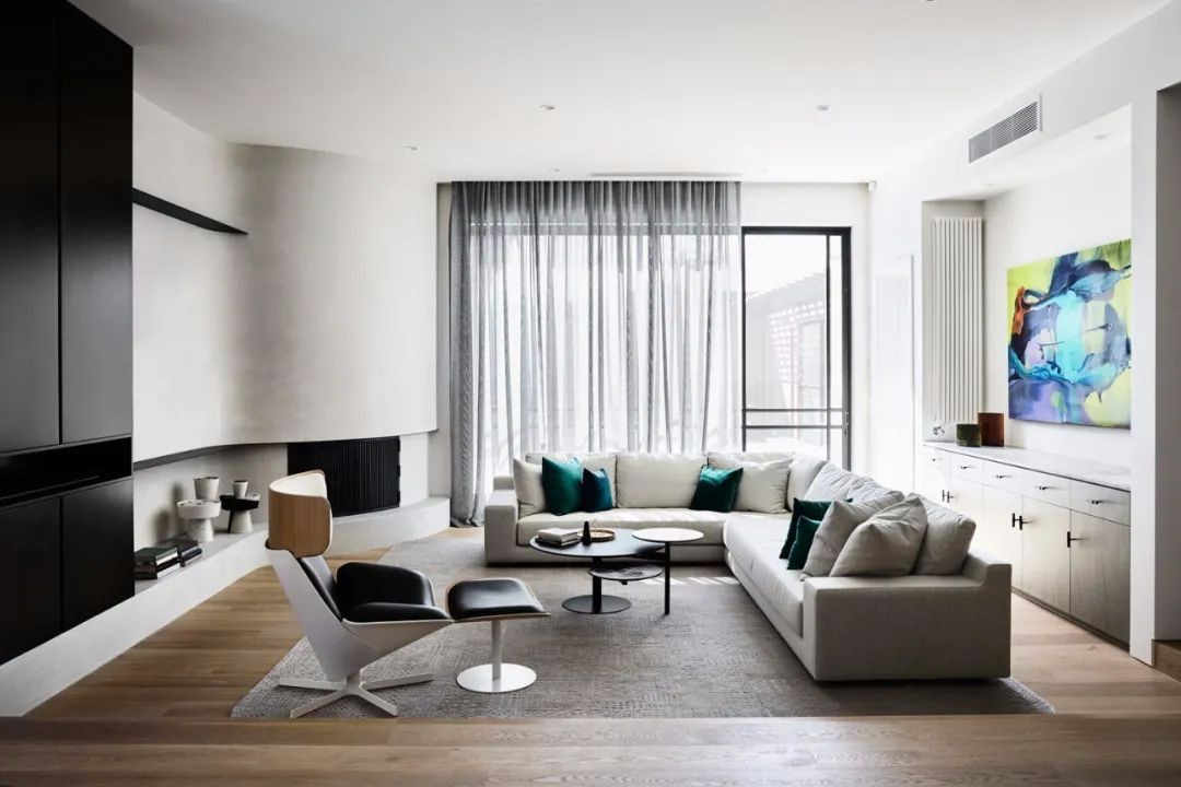 客厅的天花板提高后与房子的前端连接起来,于是更多的阳光可以射入室内。阳光穿过餐厅和卧室,增加视觉面积,让房间更加地通透、舒适。