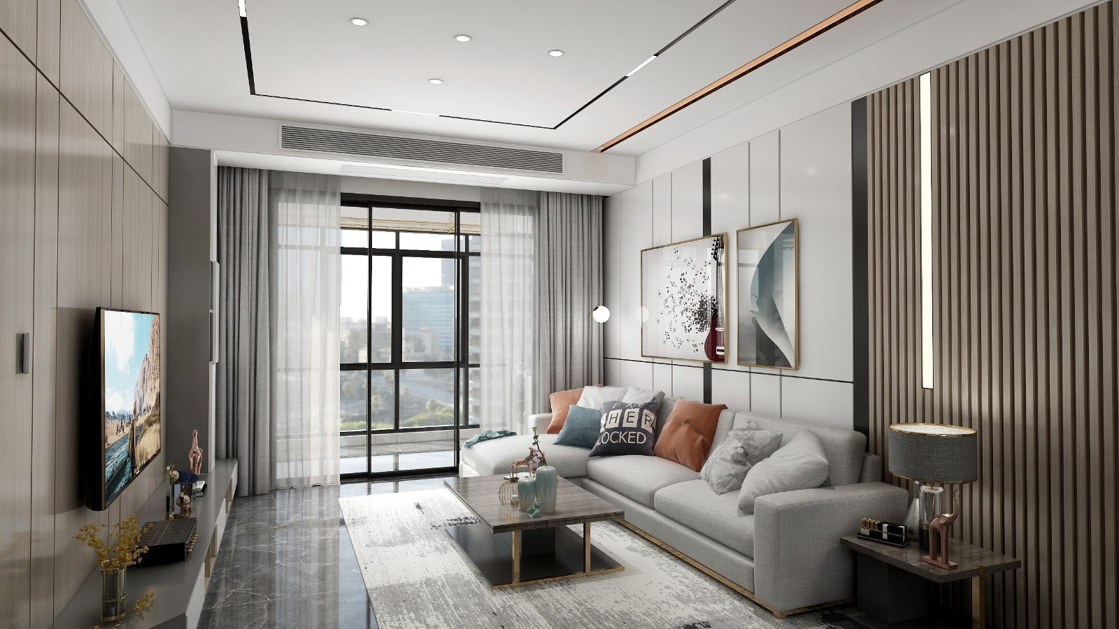 电视直接挂在墙上,没有电视柜的搭配,却有一种别样的简约风情。