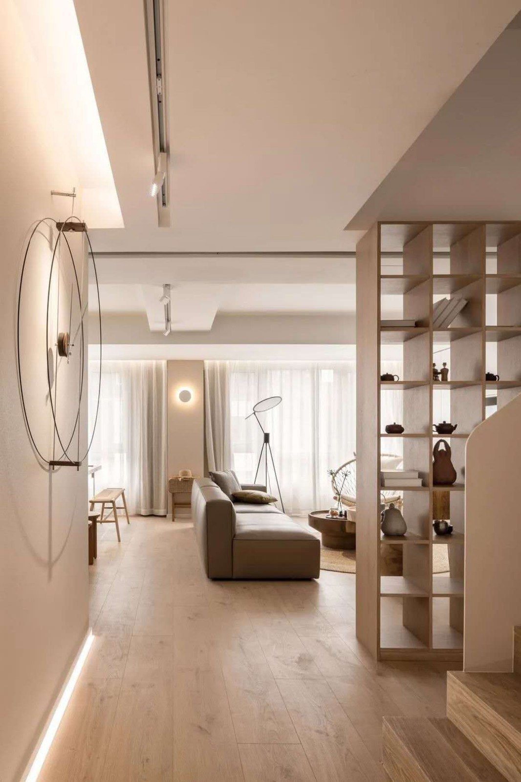 整体设计没有采用主灯设计,去那是采用的射灯以及筒灯设计,简洁大方,一点也不约束。
