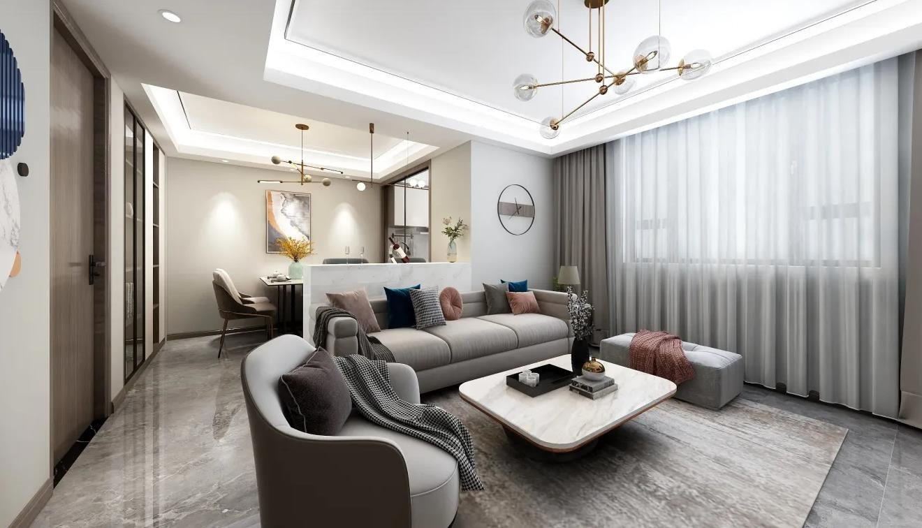 客厅采光充足,阳光顺着窗户倾泻而下