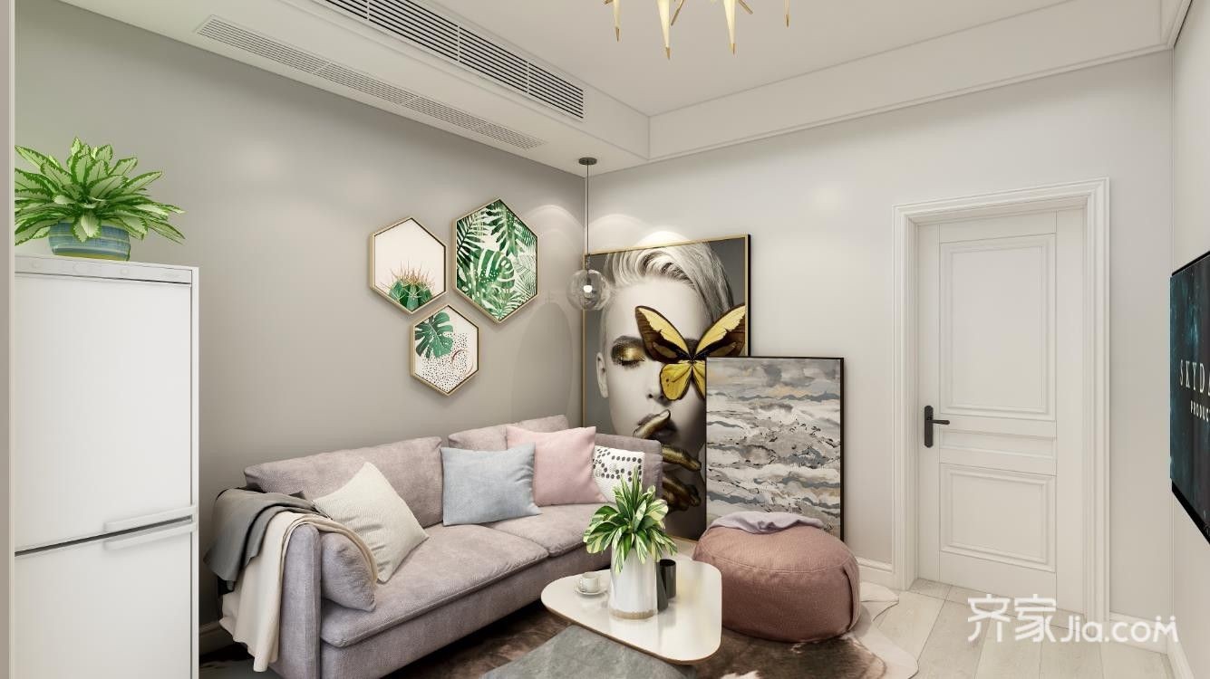 北欧风格设计 老式直通户型 中间无自然采光 南面整个阳台采光充足 色彩搭配清新优雅 较为适合年轻人居住