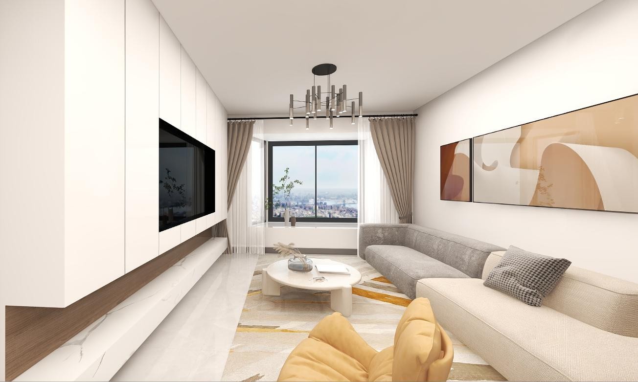 进门后正对客厅,利用鞋柜做隔断,分割一个门厅的空间。主卧阳台改成电脑办公空间,充分利用空间。