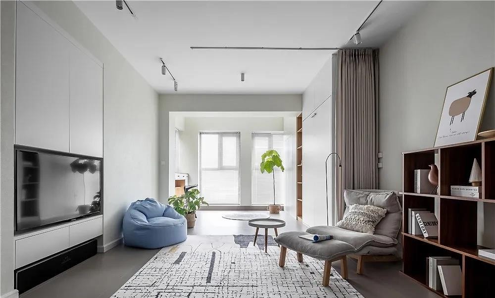 电视墙打造了嵌入式收纳柜,白色柜体与墙面融为一体,兼具颜值与实用性,且不占空间。