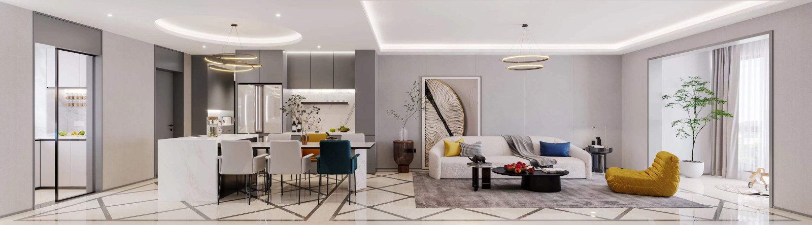 整个设计从客户的个人生活和需求出发,业主独特的工作习惯使她需要一个多功能的集工作、休闲、学习为一体的空间布局方式。她希望能在家居生活中添加更多的可能性