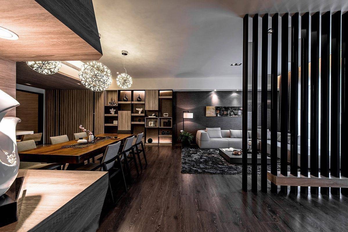 带状的茶镜与木质纹理,以深、广两个方向延伸空间错落的景深层次,带出温润与时尚的张力