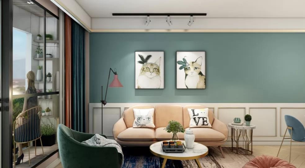 橘红色的背景背景墙,一眼看上去十分显眼,和家具搭配真是绝了
