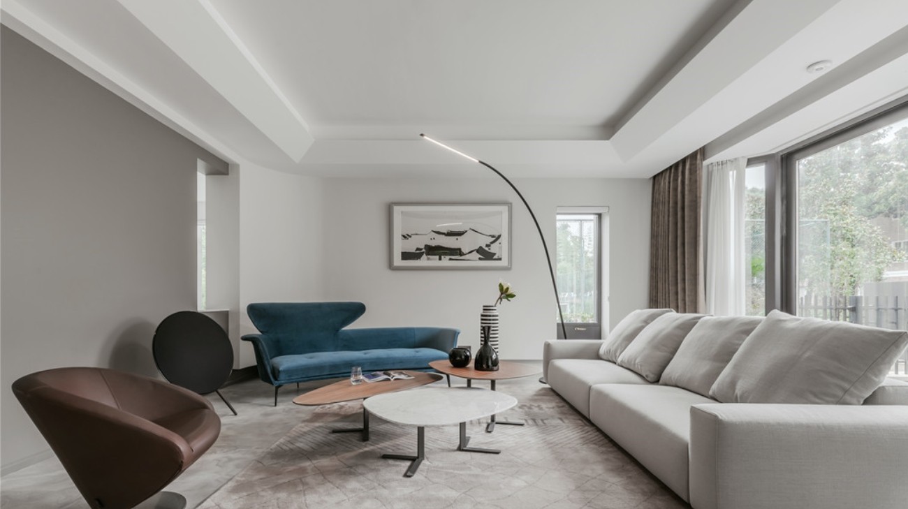 整体家具造型简约,空间大面积留白,营造了一种低欲望的生活方式,家可以被填满也可以被清空,内心越富足对物质的渴望反而越低。