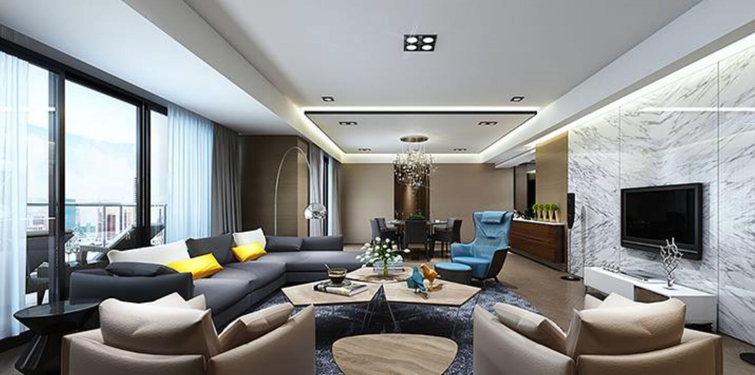 在色彩方面,设计师选用明快的蓝色沙发为跳色,打破了素雅颜色的沉闷,使得整个空间活跃起来。