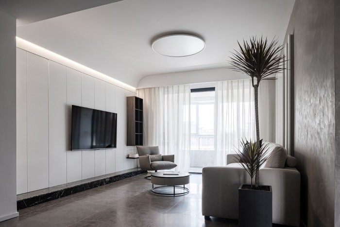 空间的顶面,一些轻快的弧形线条在现代空间的轮廓中单向定格,线***味慢慢地、深深地渗透到空间印象中,我们是被家拥抱着的。将公共空间的收纳更多集中在餐厅的一侧,保持恰当的体量,兼具遮物和陈列两种功能,柜门留白***限度的让表明平整无饰,白色不再是色彩,而是让空间在视觉上更有余裕的素材