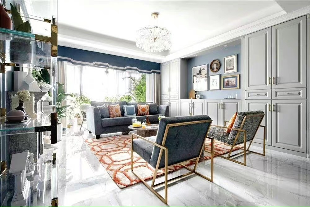 客厅蓝灰搭配,现代美式