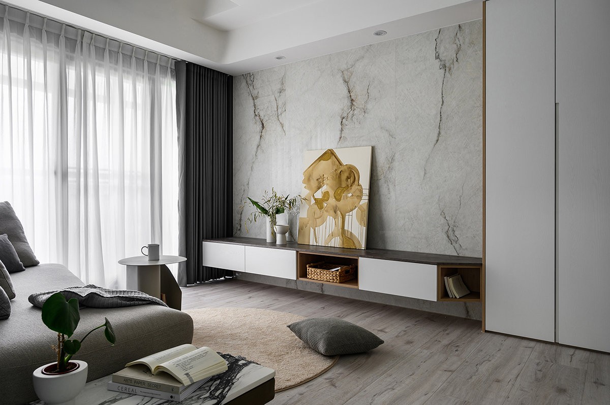 岩板电视机背景墙,定制一体电视柜