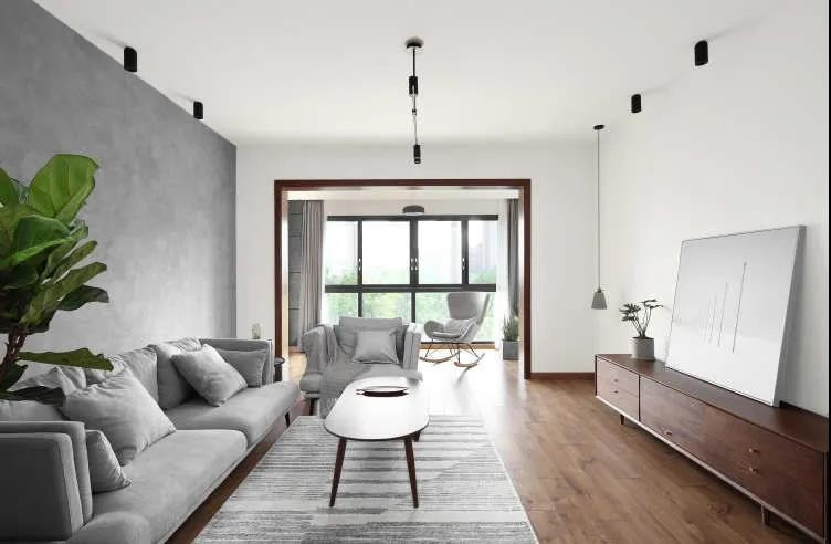 客厅全貌,基础装修非常简单,大面积的使用白色,加上良好的采光,给人***感觉就是宽敞亮堂。放弃吊顶设计,顶部保持了原有的样子。明装筒灯和长吊灯结合,可控范围大营造不同照明效果。