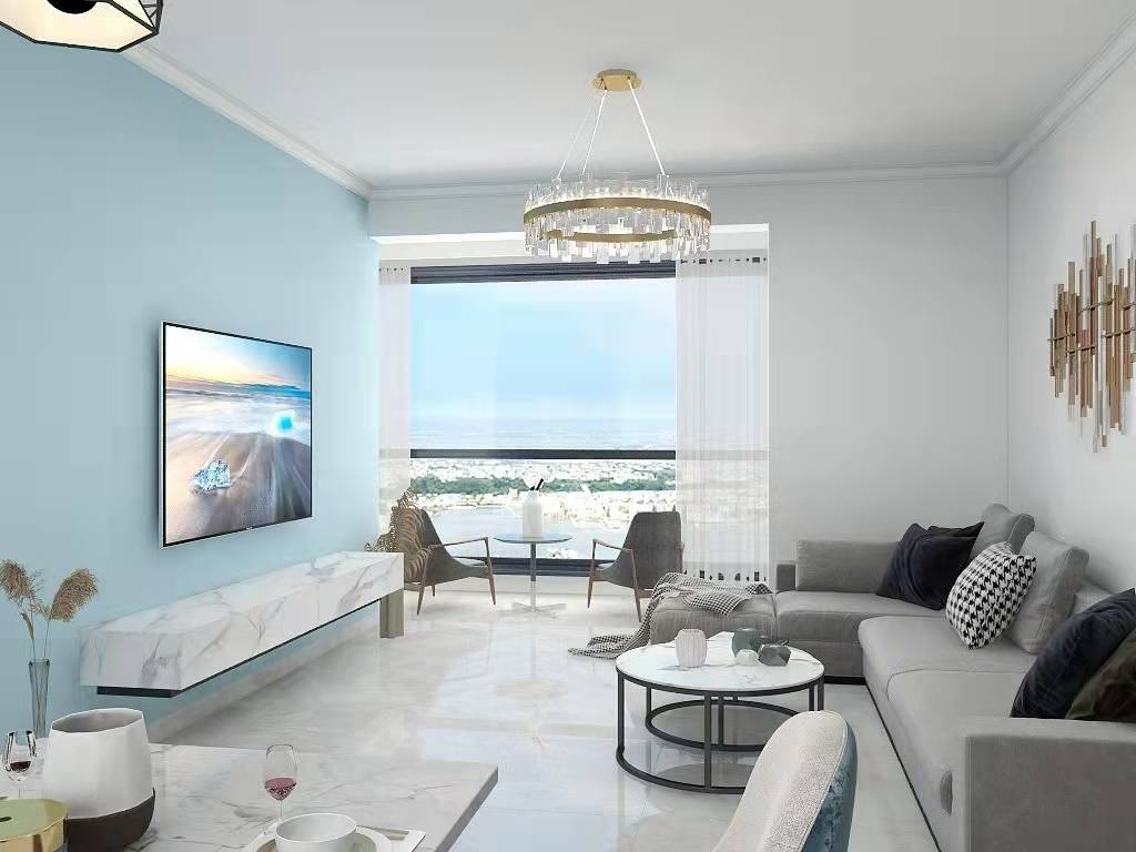 客厅的设计主要是以简约为主,主打白色和浅蓝色调,白天的客厅主要是采光,晚上则是照明,,现代简约风格的装修设计以自然流畅的空间感为主题,使人与空间享尽浑然天成的契合惊喜,浅蓝色的主题墙彰显主人的品味,让人眼前一亮的感觉