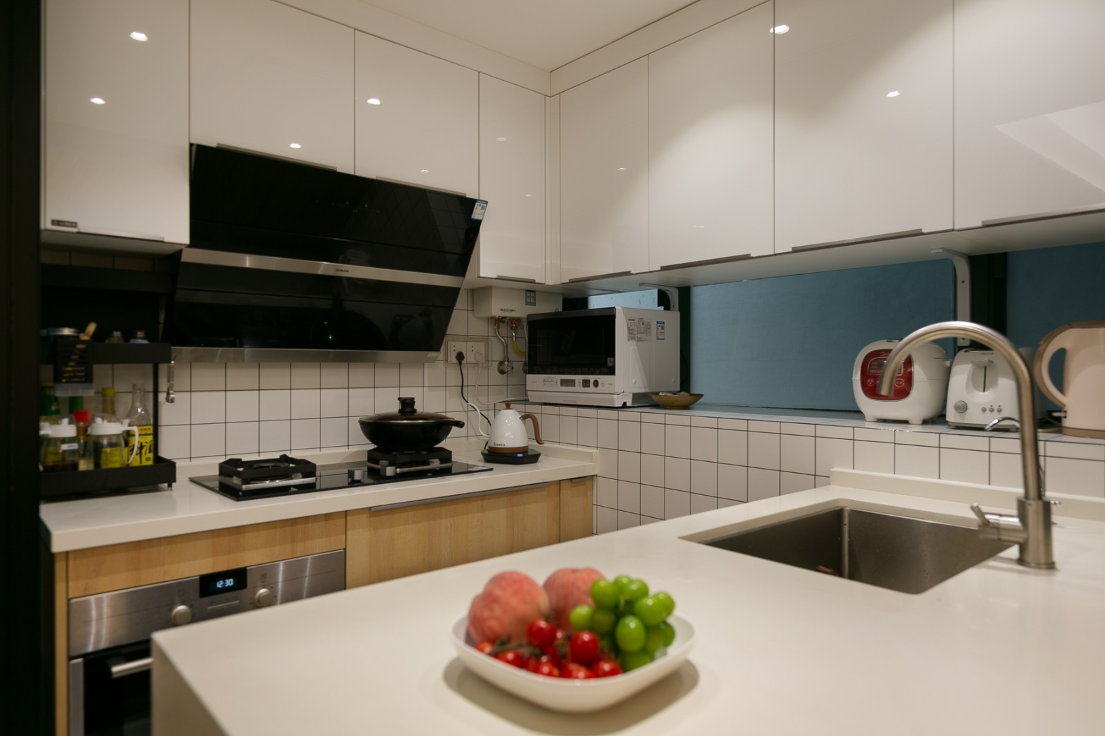 可分可合式开放厨房的社交属性,让设计师更需要注意厨房与其他空间风格上的统一协调性。图中也可以看出,白色与木色的搭配呼应了餐厅空间,而***的收纳,也在厨房中得到了充分的体现。 卫生间