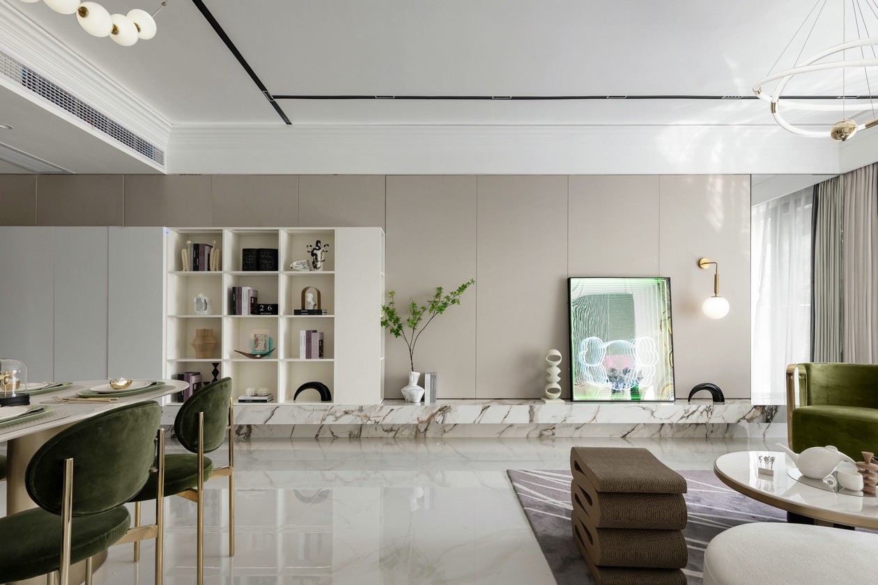 客卧空间分外紧凑,通透清澈的色调中一抹牛油果绿,打破了***灰的沉静,让房间焕发生动。无处不在的艺术品分层次地涤荡置入,寻获着生活与艺术的平衡。