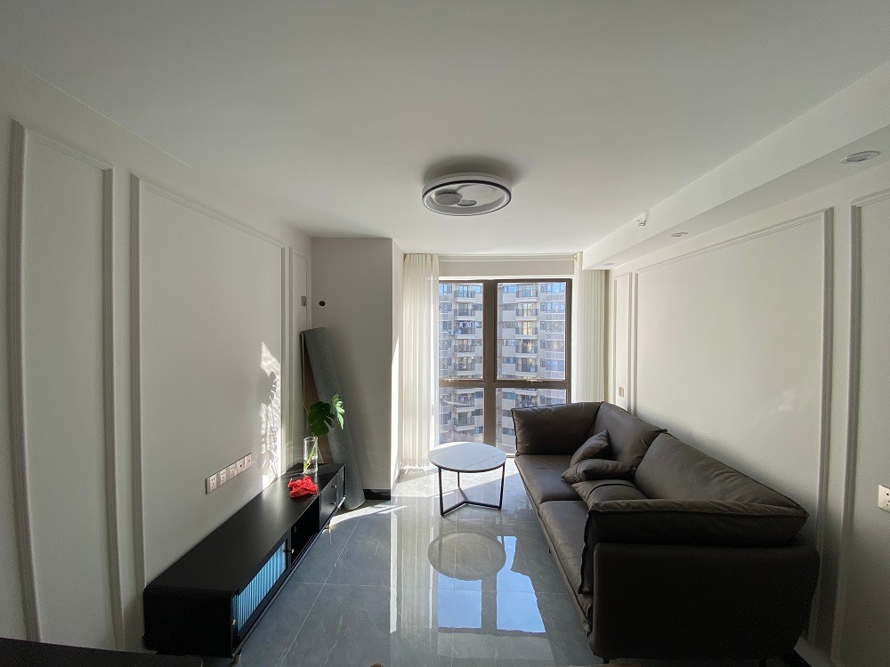 客厅刷奶白配以灰黑色家具形成鲜明对比