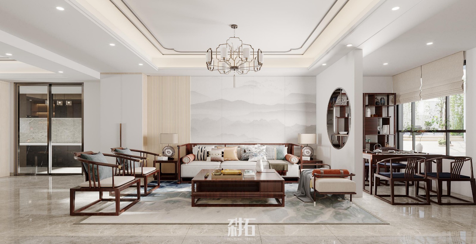 今天介绍的作品是总面积为286平米,室内面积为158平米的现代住宅,采用意境派灰白调的硬装与精雕细琢的红木家具等中式味道浓厚的软装进行融合设计,将东方美学和舒适度两者做了权衡。