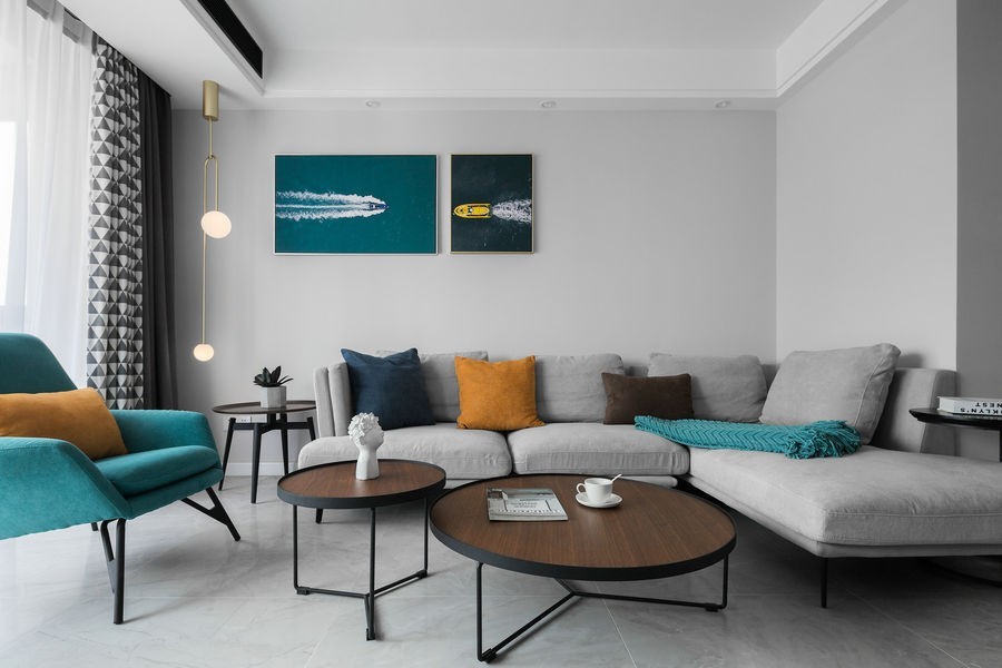 白色的墙面、白色的家具和沙发,让客厅看上去格外简洁开阔。