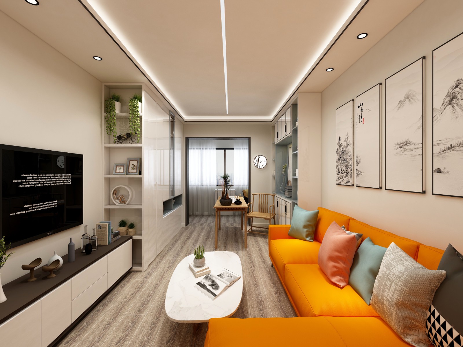 中式与现代相结合,鲜艳的颜色提高空间的亮度,视觉上提升空间感