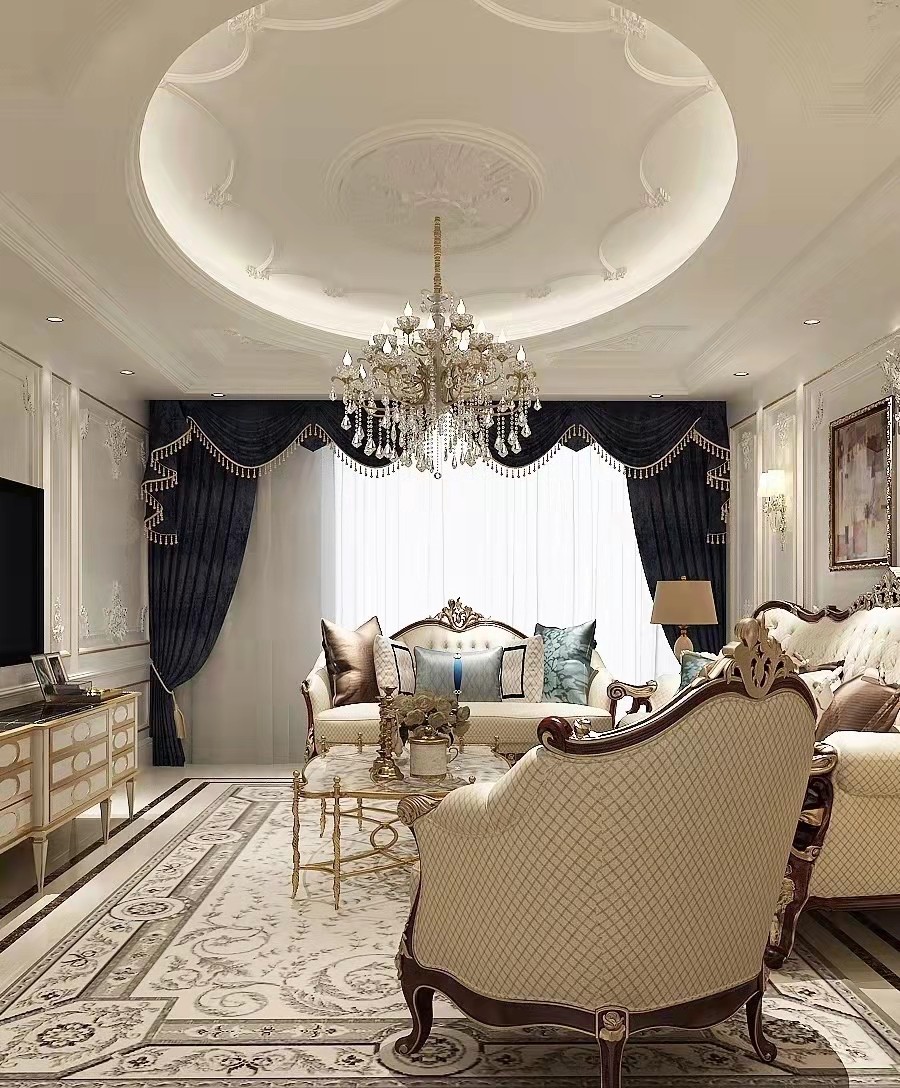 并且在家具的选配上,一般采用宽大精美的家具,配以精致的雕刻,整体营造一种华丽又不失温馨的感觉。