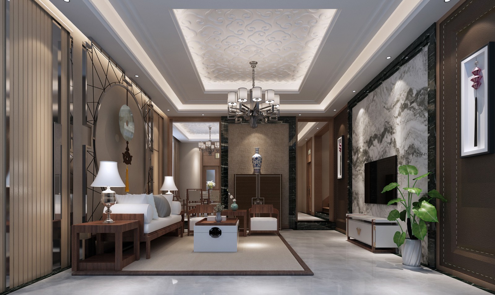 客厅空间.将中式元素有现代的的手法融入生活空间.
