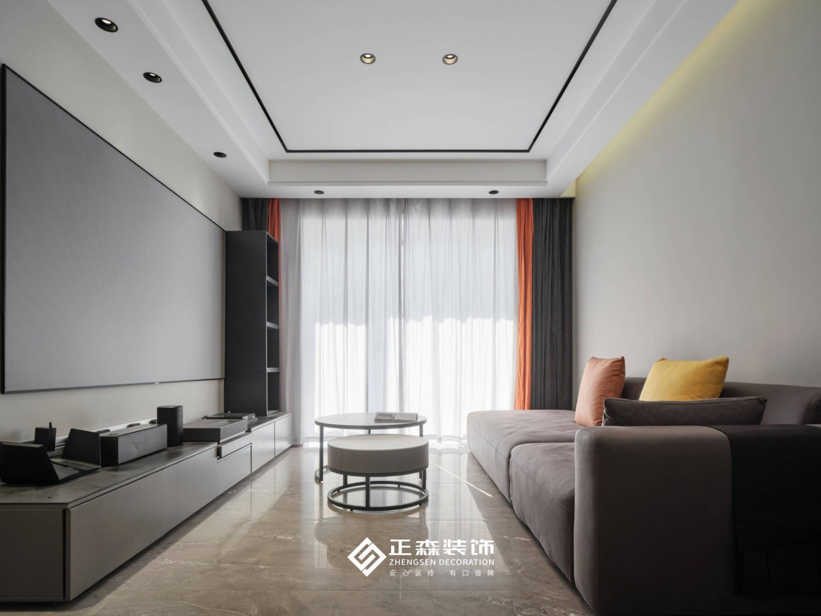 没有过多的复杂的电视背景,直接幕布电视代替,非常大气。