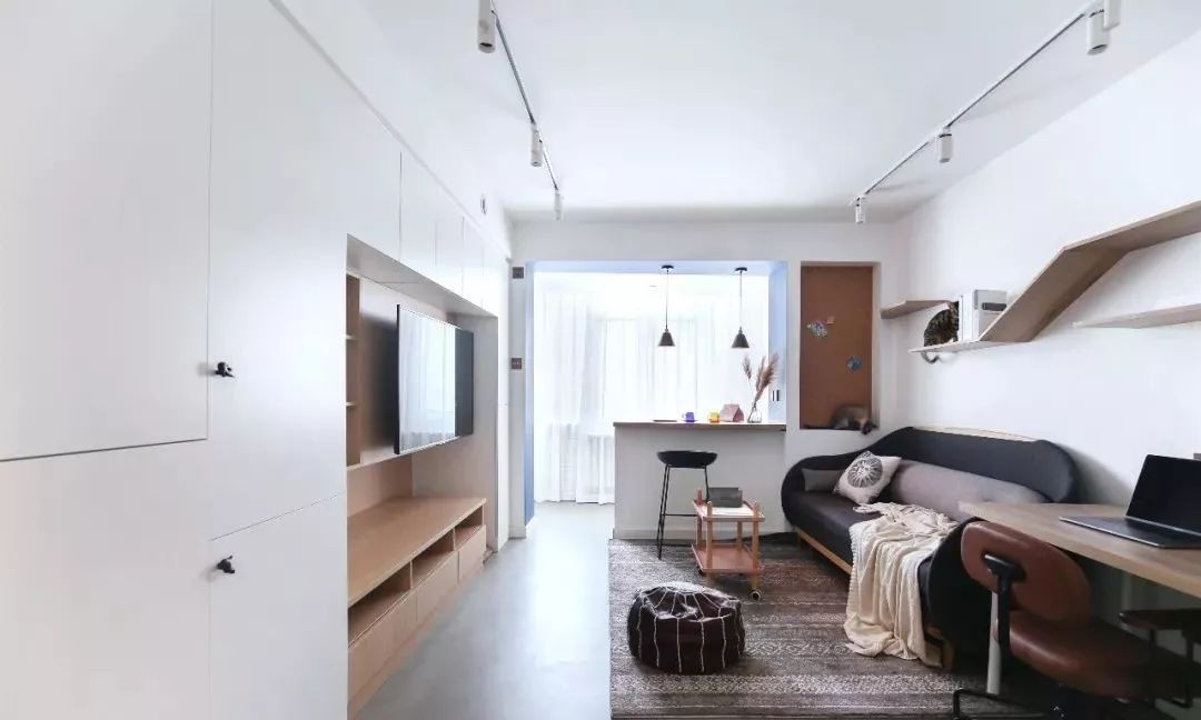 今天要分享的是一间48㎡北欧风单身公寓装修案例,长条形的户型,不仅有隐形的收纳空间,地台床的设计也大大增加了室内的收纳空间。
